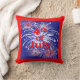 Obtenha no balanço de um divertimento 4o da celebração de julho com estes travesseiros brilhantes que caracterizam fogos-de-artifício vermelhos e brancos com as estrelas que estouram no ar em um fundo azul profundo moldado no vermelho brilhante. Suporte do travesseiro é vermelho contínuo assim que vire-o para o uso após o 4o. ©AnuraDesignStudio todos os direitos reservados