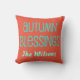 Um travesseiro decorativo e colorido vermelho para sua decoração de outono, este design apresenta "Bênçãos de outono" escritas em azul esverdeado com o nome de sua família em fontes azul muito claras e cursivas. Decorar hoje!