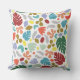 Gráficos urbanos modernos no estilo de design plano. Folhas, diamantes, crescentes e formas orgânicas. Vermelho, laranja, verde, azul, lavanda. Travesseiro decorativo Vermelho Verde Laranja Urbano Único.
