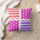 Um travesseiro chevron/polkadot com cor vermelha, branca e 2 cores escolhidas. Você pode personalizar o travesseiro o que quiser! As cores padrão são magenta e roxa, mas você pode escolher as cores que combinam muito bem com o vermelho; você pode adicionar texto também!
