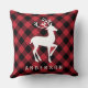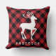 Almofada Vermelho Rústico Xadrez Preto Cervo Natal Monogram