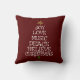 Bonito travesseiro de férias. Vestes de Natal numa árvore! Cartas brancas sobre o travesseiro vermelho profundo