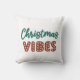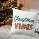 Travesseiro decorativo de Natal bonito, na moda, retrô tipografia, com a inscrição "vibes de natal" e texto personalizável no verso. Este travesseiro é um complemento fantástico para a época festiva e também pode ser um excelente para presentear alguém com este natal!