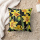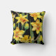 Throw pillow with vibrant yellow daffodils and green stems on a striking black background. The floral pattern creates a lively, elegant design."