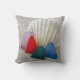 Vidro marinho colorido contra um design de uma concha branca neste travesseiro.