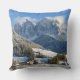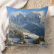 Travesseiro decorativo com o St. Magdalena da vila (papai noel Maddalena) com sua igreja no Villnoesstal em Tirol sul, Italia, na neve durante o inverno.