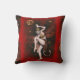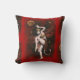 Esta almofada é ilustrada com um 6 de uma dançarina de diabo vintage peculiar. O fundo é vermelho com uma lua de crânio gótico e estrelas.