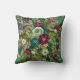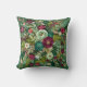 This painterly botanical throw pillow features a lush, overflowing bouquet of deep burgundy and soft mint-green roses, accented by delicate white blossoms and textured ferns, set against a moody forest green background. Perfect for cottagecore, dark academia, or maximalist interior styles.
