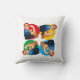 Vintage ROSIE O Travesseiro decorativo RIVETER em branco, mostrando a imagem icônica de Rosie em círculos vermelhos, amarelos, azuis e verdes em um impressão. Presente ideal para o Dia do Trabalho, ou para as ocasiões de empoderamento das mulheres. Este Travesseiro decorativo Rosie Riveter também seria excelente de dar com as camisetas e presentes STEM correspondentes. Também em preto e rosa.