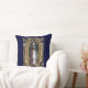 Virgin de Guadalupe, reprodução de uma pintura antiga por Manuel Arellano em 1691, em um fundo azul escuro.