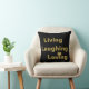 Travesseiro decorativo preto e ouro inspirador "Vivendo, Rindo e Adorando". A cor preta do plano de fundo pode ser alterada pelo cliente. Por celeste@khoncepts.com
