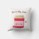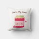 Uma garrafa fofa de doce de morango com um morango deitado do lado e um coração do outro. A doce legenda do trocadilho diz "Você é minha geleia!" Travesseiro decorativo adorável para Dia de os namorados ou para uma confissão de amor!