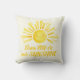 Travesseiro de texto personalizado de arte solar branca, de cor amarela-clara. Personalize seu próprio nome e texto, se necessário. Lê-se Elana que você é o nosso Sol. Tinta original, branca, feliz e feliz pintura solar e design, de Sarah Trett, para www.mylittleeden.com no Zazzle.