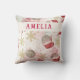 Celebrate the holiday season with this charming personalized volleyball Christmas pillow. Featuring a festive watercolor design with pink accents, shimmering golden snowflakes, and adorable volleyballs with Santa hats, this pillow is a unique tribute to a beloved sport. Customize it with name for a special touch. It's an ideal keepsake for volleyball players, coaches, or fans.