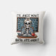 Engraçado travesseiro decorativo de professor para o Halloween, com um professor de esqueleto e a citação "Vou esperar até ficar quieto."