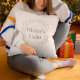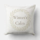 A white throw pillow featuring the phrase “Winter’s Calm” in soft taupe serif, framed by a faint taupe leaf wreath. Its warm neutral palette suits seasonal living rooms and creates a refined winter accent for sofas, reading chairs, and layered holiday décor.