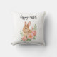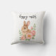 Almofada Watercolor Bunnt and Pink Floral Wreath Easter
