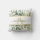 Este travesseiro decorativo personalizado apresenta um esguicho de folhagem de aquarela com eucalipto e verde misto. Uma elegante borda dourada rodeia o seu monograma inicial e o seu nome numa escrita moderna. Os estilos de fonte, cores, tamanhos e muito mais podem ser facilmente ajustados clicando em "personalizar mais". Faz um presente excelente! Itens de coordenação disponíveis. Certifique-se de me seguir para obter novas atualizações de produtos. Obrigado pelo seu interesse no SapphireDesigns!