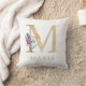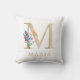 Watercolor Spring Wildflower Faux Gold Letter "M" Throw Pillow. This beautiful hand-painted watercolor design features yellow wildflowers, pink wild roses, and blue delphinium flowers with a faux gold letter "M" and a name that can be easily personalized. This design is part of the Spring Wildflower collection that can be viewed by clicking on the above collection link. (The back of the pillow has the same design, but you can easily delete the design/monogram/name, then add a background color to match the flowers on the front.)