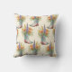 This floral cowboy boot throw pillow showcases a beautiful seamless pattern of hand-drawn teal and pink ombre boots, used as vases for lush bouquets of orange poppies, purple lupines, and golden wildflowers.