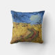 Um travesseiro decorativo de arte fino com a pintura de óleo, Campo de Trigo com Corvos (1890), de Vincent van Gogh (1853-1890). Representando um caminho cênico que se enfileira através de campos de trigo ouro sob um céu azul vasto e vibrante, enquanto um bando mesmerante de corvos dança no ar. A mistura de tons ricos e terríveis e matizes azuis vívidos cria uma composição visualmente marcante e emocionalmente evocativa. Considerado seu último quadro, embora os historiadores difiram sobre isso.