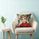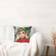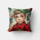 A sweet Christmas pillow with a cute elf cartoon and a festive background.