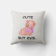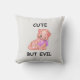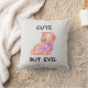 Travesseiro decorativo com um gato que pode ser visto como adorável e como um pequeno "mau". Enquanto a ilustração é principalmente doce e caprichosa, ela poderia facilmente ser enquadrada como "enganosamente inocente" — o tipo de arte que toca a ideia de os gatos serem partes iguais amáveis e diabólicas.