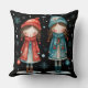 Almofada Whimsical Christmas Girls in the Snow Throw Pillow