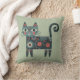 Almofada Whimsical Folk Art Retro Boho Cat Sage