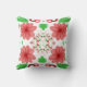 Square Throw Pillow decorative stylish home furnishing decor accessory printed with Whimsical Red Flowers Green Leaves On White Art fun digital graphic Illustration design with soft translucent and solid colors by TheFabricSeal print on demand shop at Zazzle.com #ZazzleMade ©️Original. https://www.zazzle.com/store/thefabricseal