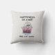 Travesseiro decorativo com uma ilustração lúdica de um design de gato temático de aniversário que é fofo, caprichoso e humorístico.