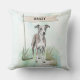 Add cozy charm to your home with this Whippet throw pillow featuring a watercolor design and customizable name flag. Ideal for breed lovers.