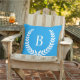 Altere o fundo bonito azul azul de cor sólida neste design branco de monograma do jato de louros para criar o seu próprio travesseiro decorativo. Fonte moderna do estilo monograma. Você pode mudar essa fonte.