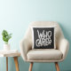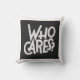 Almofada na linha de frases e citações, com a frase "Who cares?" (quem se importa?) dá um toque de humor e personalidade na sua decoração.