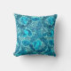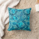 Travesseiro decorativo de um padrão têxtil William Morris Art Nouveau, melhorado digitalmente e colorido - peônias estilizadas e folhas em tons de azul-índio escuro, azul-cobalto e turquesa, contra fundo aqua claro