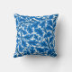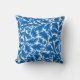 Travesseiro decorativo de William Morris Art Nouveau, padrão têxtil - folhas de carvalho e ramos em azul-safira profundo, acentuado com preto, sobre fundo branco