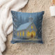 A white quaint church, with its illuminated windows, stands in stark contrast to the cool, snowy forest landscape surrounding it