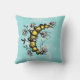 Travesseiro de bruxaria com ilustração floral da lua crescente envolta em flores abstrato-lírio sobre fundo azul claro com nuvens brancas pouco visíveis. Este trabalho de arte digital da lua esquisita é desenhado num estilo parecido com tatuagens com contornos negros grossos. Tem uma mistura de sentimentos góticos e boêmicos.