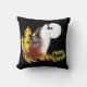 Lobo uivando numa lua de cheio com folhas de outono e bolotas contra um pano de fundo de preto