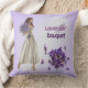 Woman with Lavender Bouquet Throw Pillow (20”x20”)