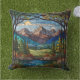 Almofada Woodland mountain scene vintage stain glass