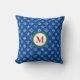 Almofada Wreath Monogramas Flocos de neve brancos Fundo azu