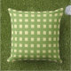 Os travesseiros na moda para tecidos externos apresentam um grande padrão de xadrez amarelo pálido e verde. CORRESPONDENDO a itens na nossa loja.