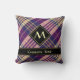 Desenho xadrez roxo, amarelo dourado e azul. Padrão contínuo. Texto e monograma personalizados.