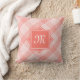 Um travesseiro moderno de xadrez diagonal de coral que você pode personalizar adicionando seu monograma personalizado inicial.