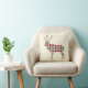 Travesseiro personalizado de veados de xadrez de tartan de inverno. Design de Tartan de Pine e Berry apresentando um veado em vermelho de morango, bronzeado, carvão e tartan de marfim em um fundo de cor de marfim. A parte de trás deste travesseiro de designer é vermelho rico de amora. Excelente de Natal, feriado, Natal decorando em um estilo rústico, madeireiro, folclino, serraria, inverno ou floresta. Esta silhueta de veados complementa a decoração com outros animais com galhadas como renas, alces, antílopes e designs de alces.
