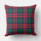 O design de travesseiro decorativo de Natal sazonal apresenta uma xadrez de tartan escocesa / padrão de xadrez de relógio em um esquema festivo vermelho, verde-caçador e azul-marinho.