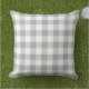 Uma almofada externa xadrez gingham cinza e branca clássica com um padrão de xadrez pequeno neutro. O gingham cinza fresco traz um acento moderno e polido para móveis de pátio, assentos de varanda ou varandas cobertas. Um padrão versátil que se coordena com praticamente qualquer esquema de cores ao ar livre.