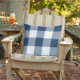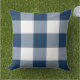 Uma almofada externa clássica azul marinho e branca com um padrão de xadrez gingham em grande escala. O xadrez azul marinho superdimensionado traz um sotaque náutico e sofisticado para móveis de pátio, assentos de deck ou cadeiras de varanda. Um padrão sofisticado que ancoraje qualquer espaço externo com estilo costeiro confiante.