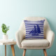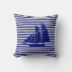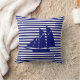 Iate azul moderno e elegante em Travesseiro decorativo branco azul listrado.